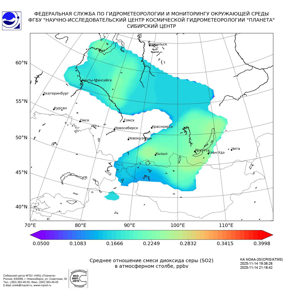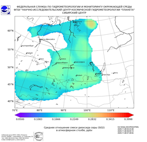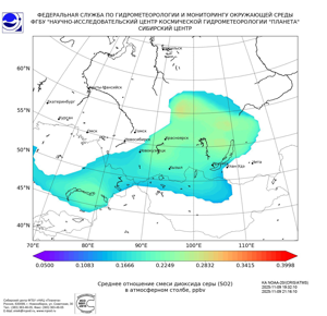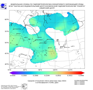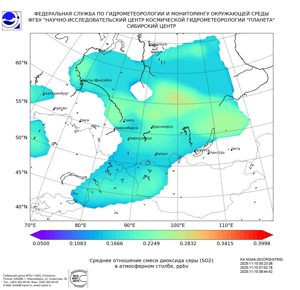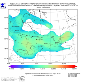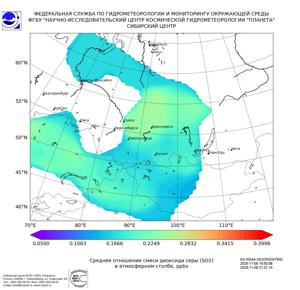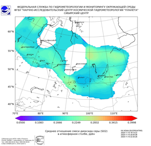 Карта содержания диоксида серы (SO2)