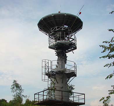 Антенная система комплекса включает параболический рефлектор диаметром 4,8 м и силовой трехкоординатный привод по осям азимута, наклонного азимута и угла места. Такая схема исключает "мертвую зону" при приеме в зенитной области. Предприятие – изготовитель комплекса : Акционерное общество «Научно-исследовательский институт точных приборов» |