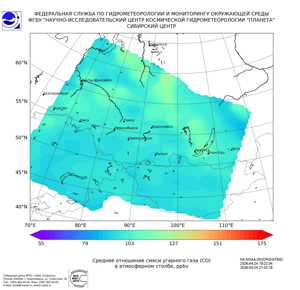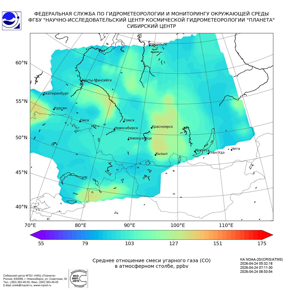 Карта содержания угарного газа (CO)